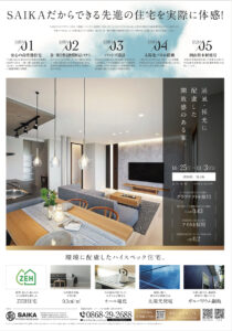 SAIKAの家は「安心」「快適」「デザイン性」を兼ね備えた高性能住宅です。