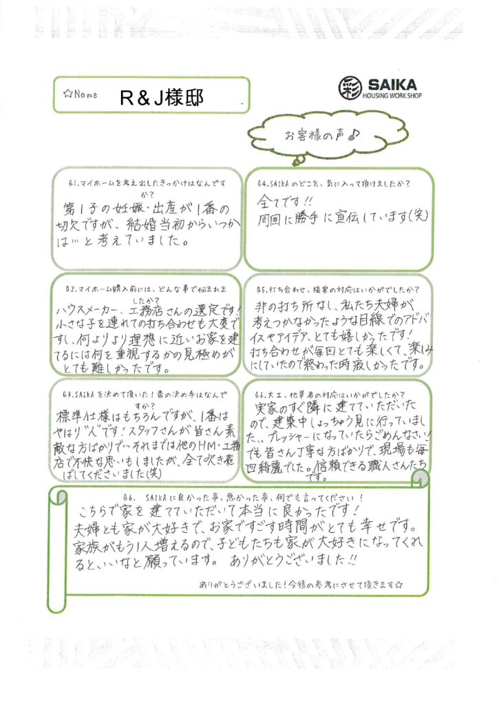 こちらで家を建てていただいて本当に良かったです!