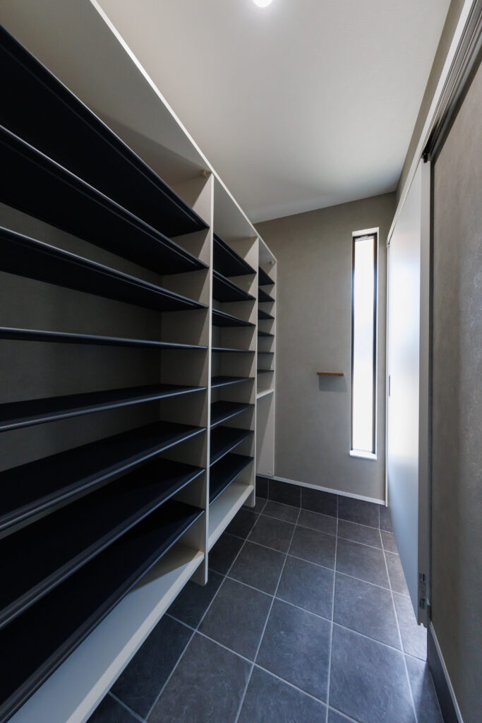 ウォークインクローゼット、帰宅動線にはパントリーも計画。