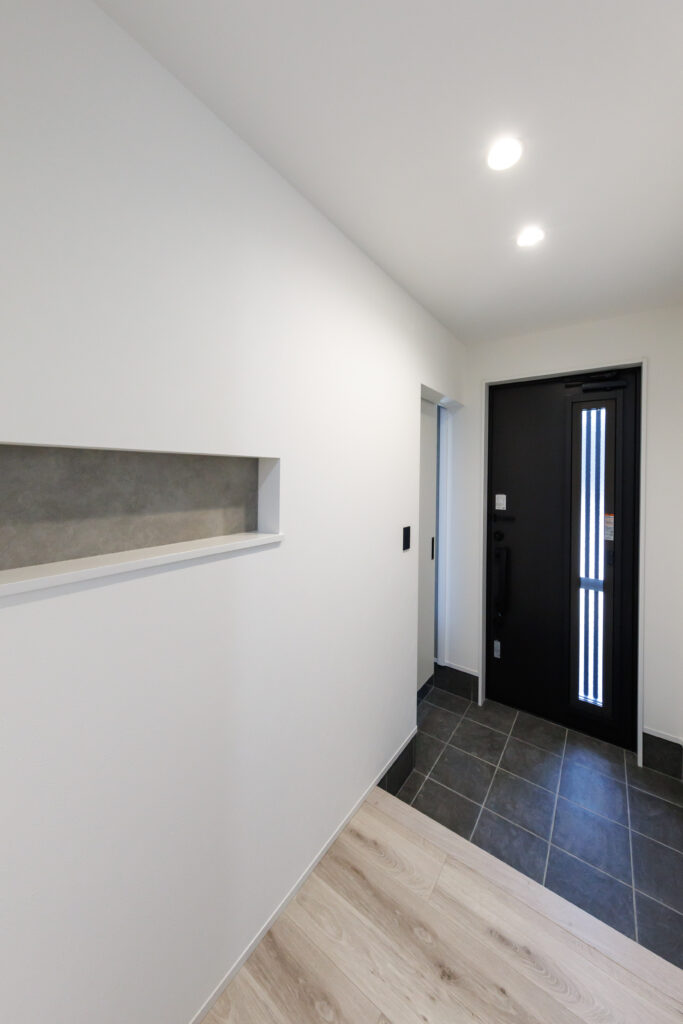 玄関には小物を飾れるニッチを計画。2Way玄関で収納たっぷり!