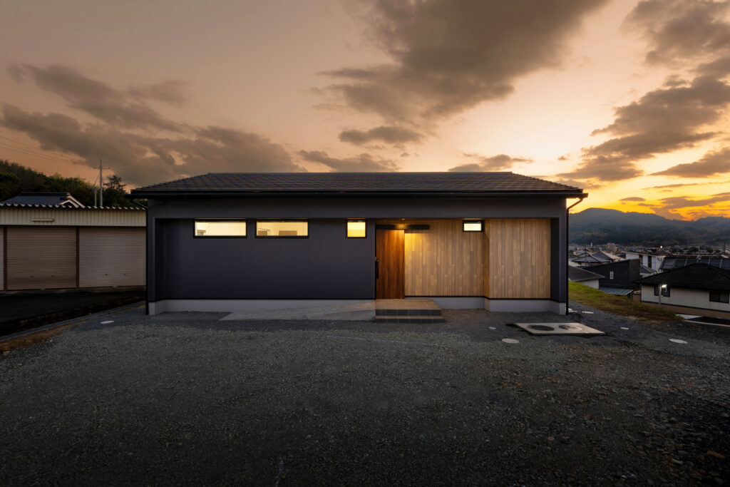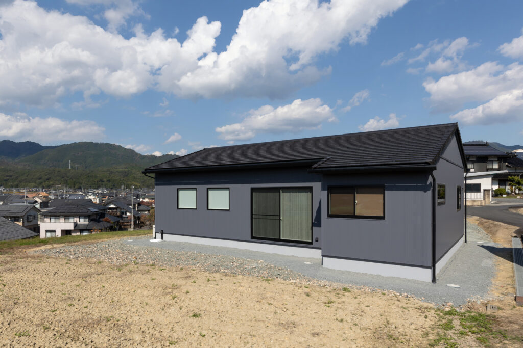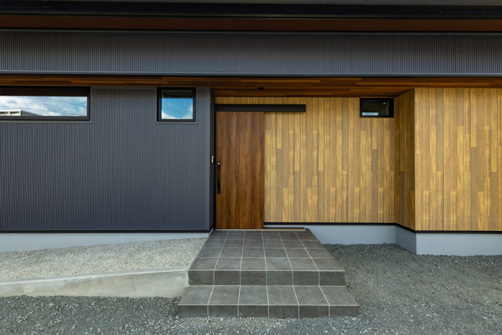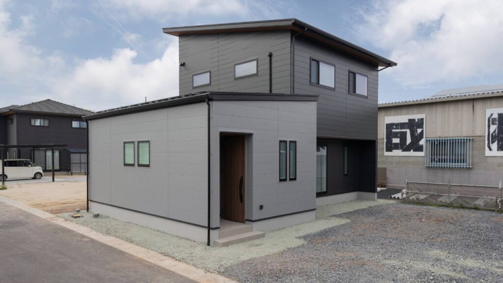 平板瓦屋根の和モダンの家。