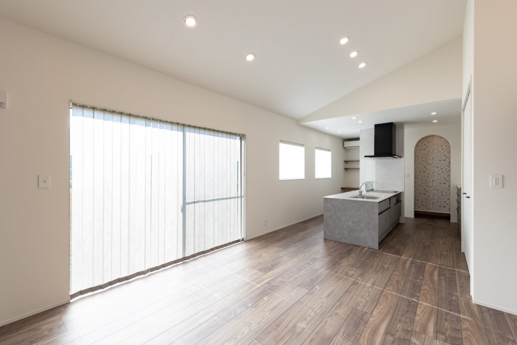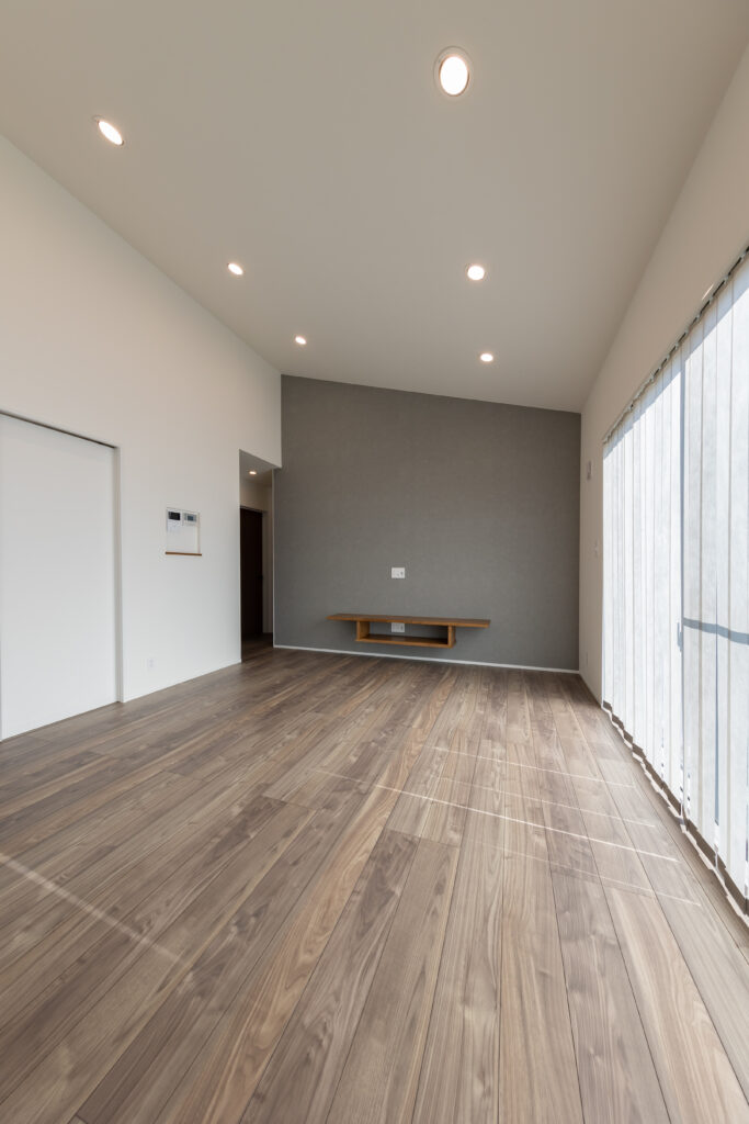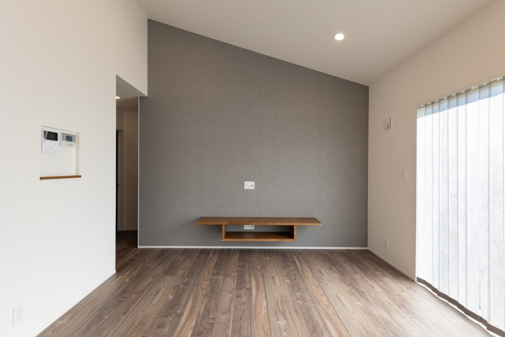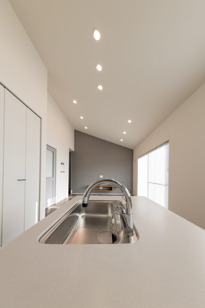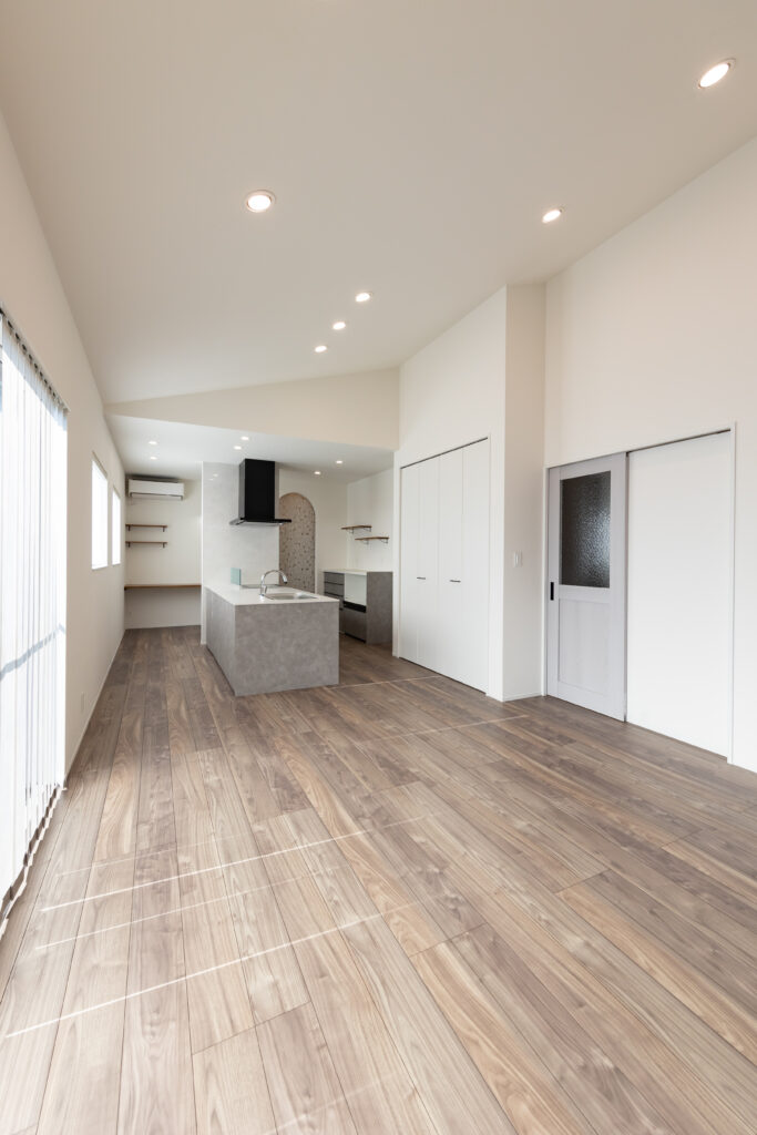 勾配天井にすることにより空間を広く演出。