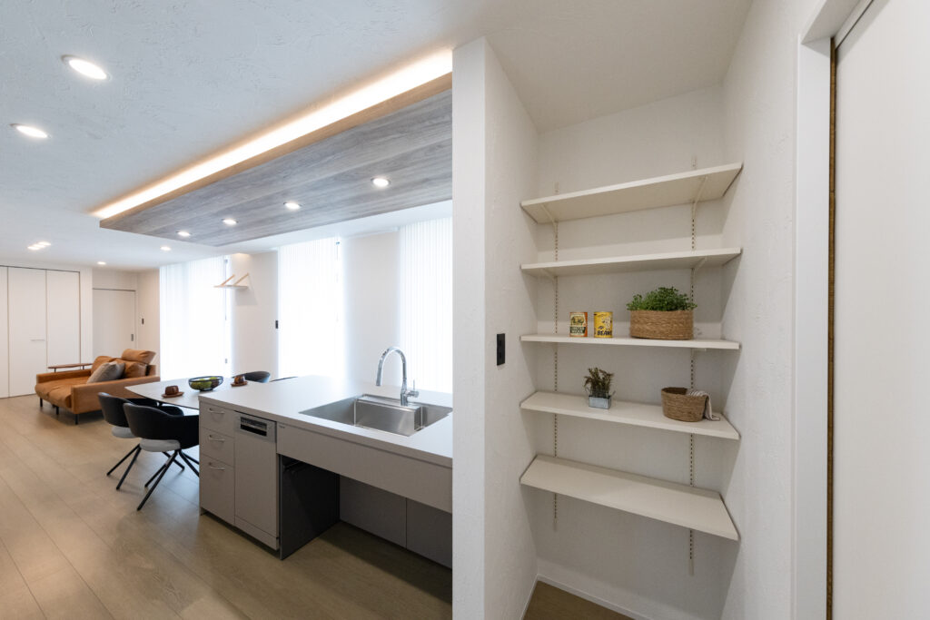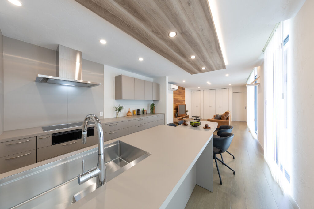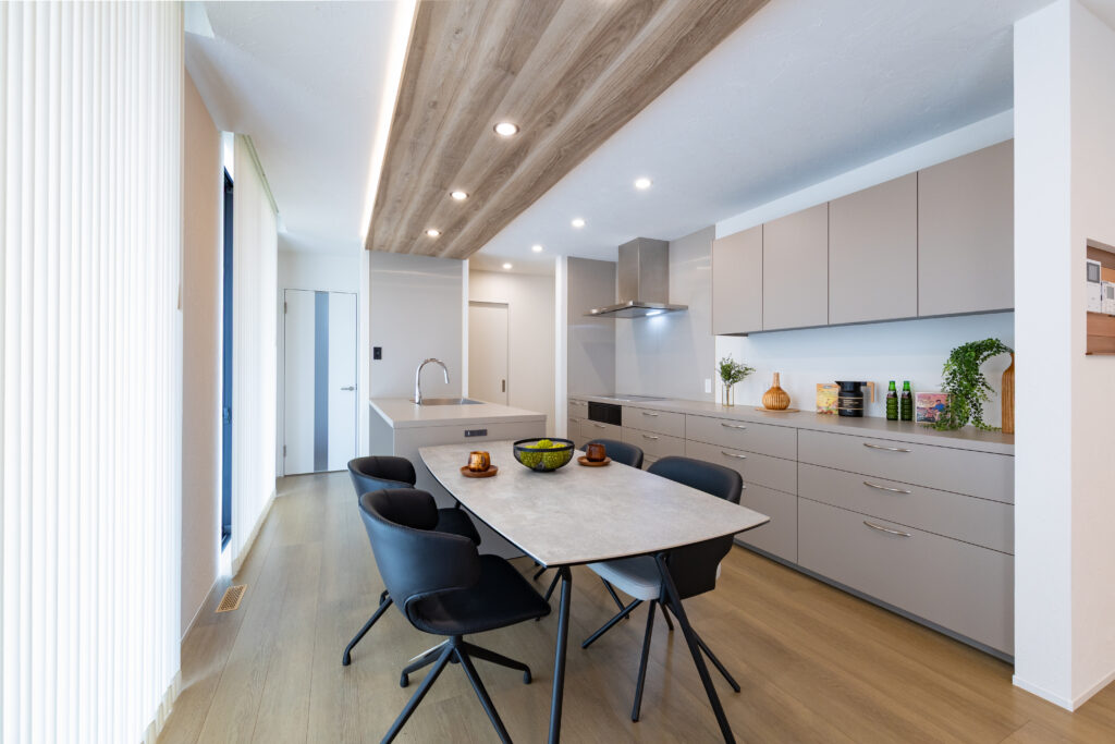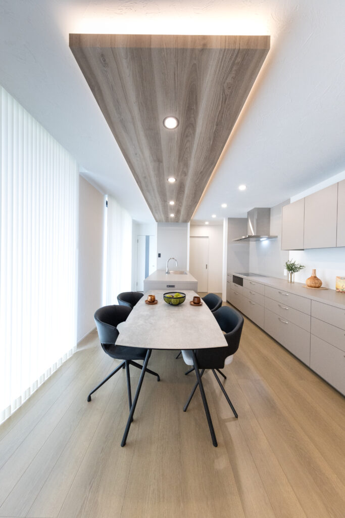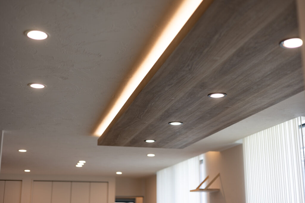 キッチンとダイニング上の天井には間接照明を。