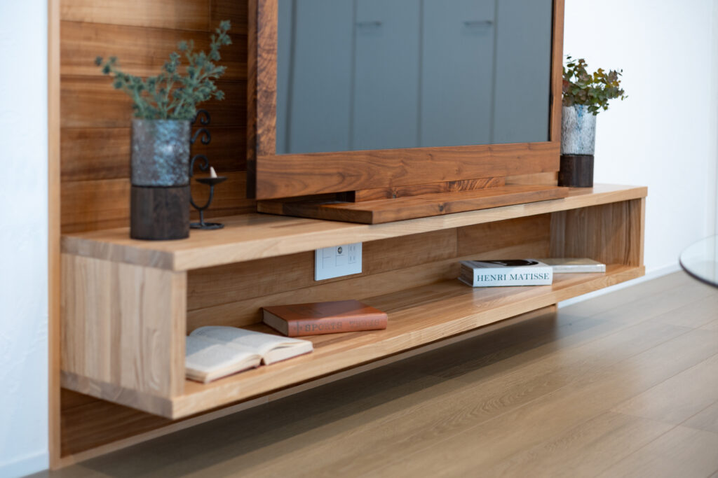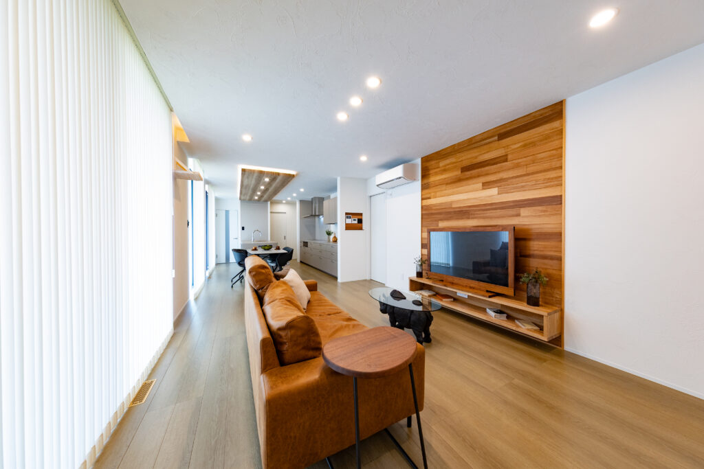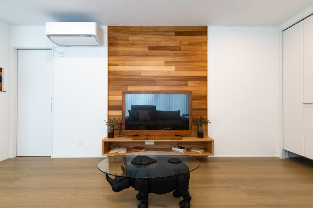 リビングの壁に無垢板で彩を。