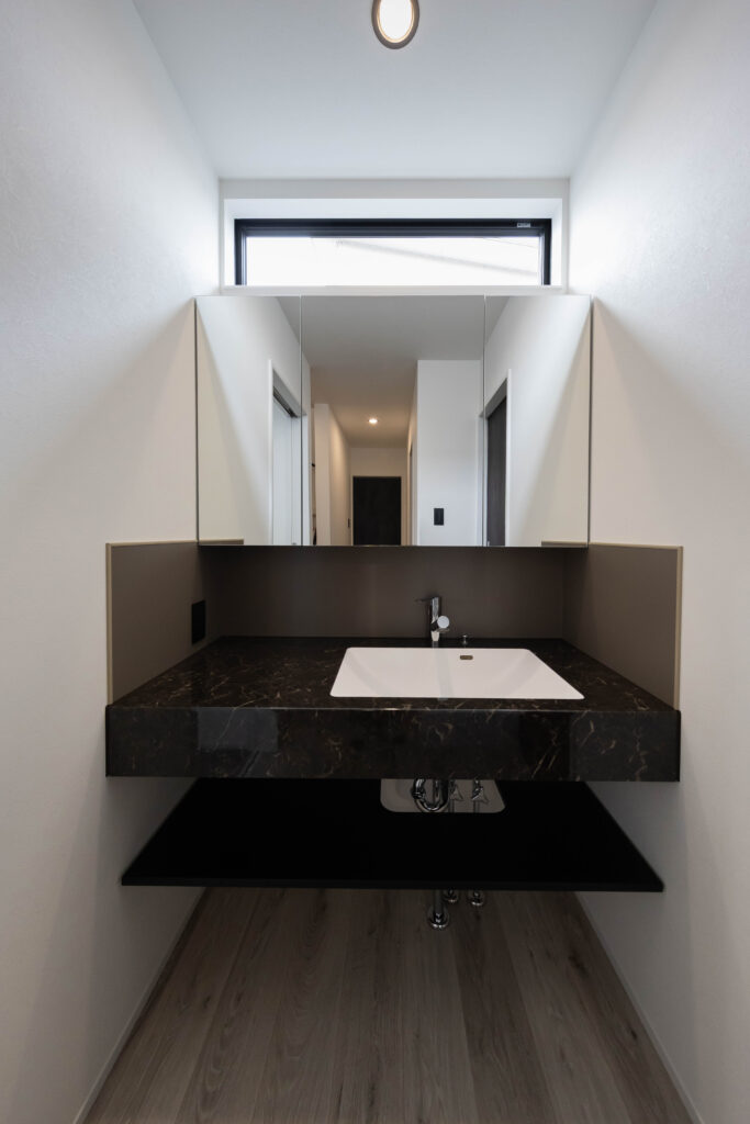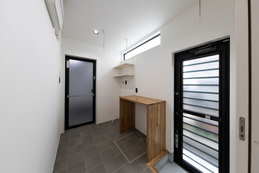 ランドリールームには雨の日でもスリッパが濡れない便利な勝手口を計画。