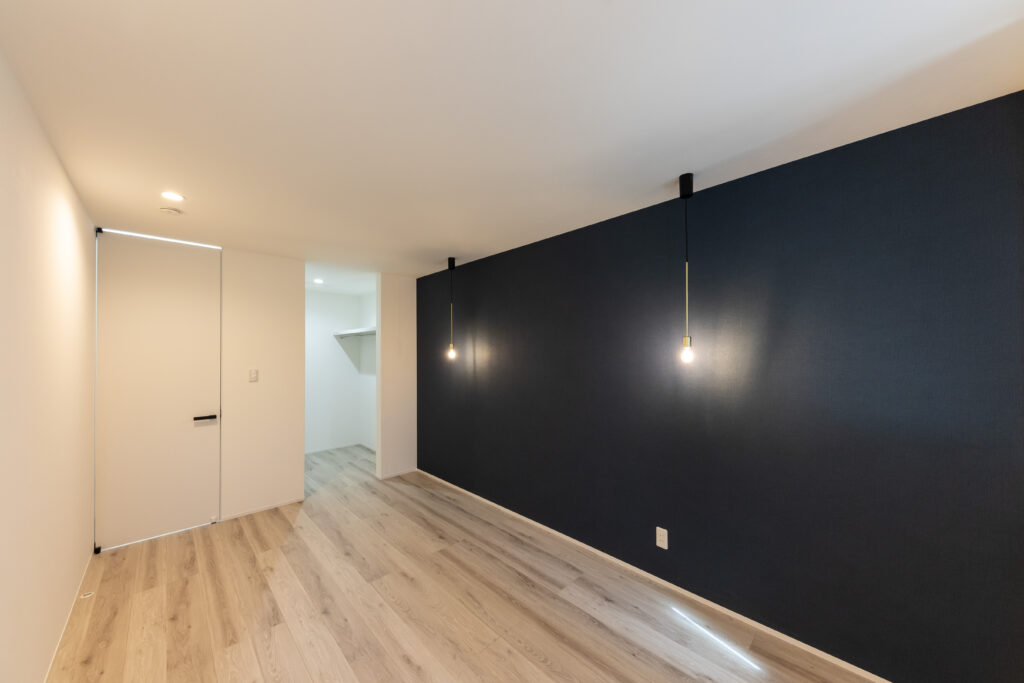 ベッドを設置した両サイド枕元にはペンダントライトを計画。