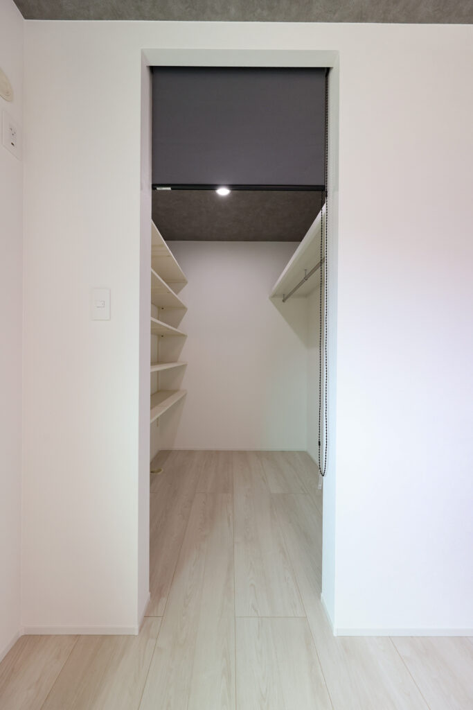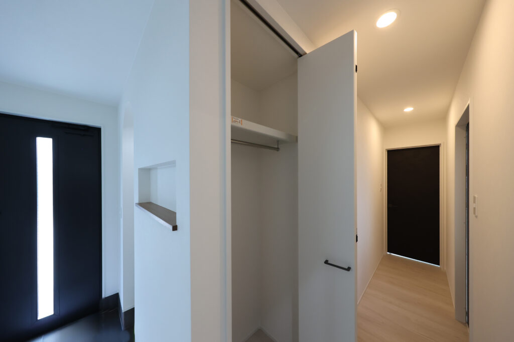 玄関横の廊下にはクローゼットを計画することで、冬物のコートなどはここに収納することができます。