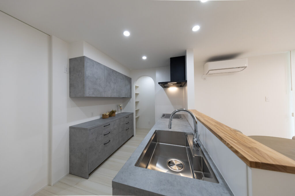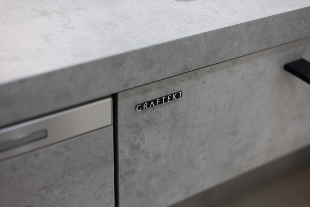 キッチンには人気のグラフテクトキッチンを採用。スタイリッシュなデザインがLDK全体の雰囲気を引き締め、インテリアとしても映えるかっこいいキッチン空間になっています。