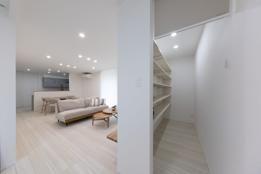 キッチンから洗面スペースやランドリーへ移動しやすい配置にすることで、料理・洗濯・身支度などの家事を効率よく行うことができます。忙しい毎日の中でも、家事負担を軽減できる住まいです。
