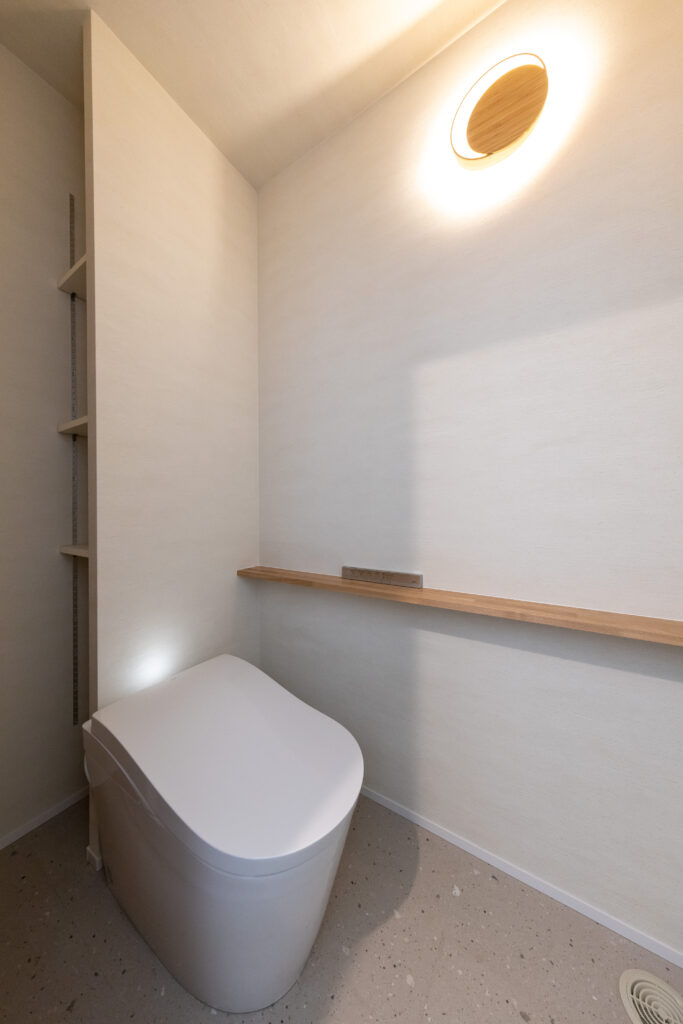 あえて明るさを抑えた照明設計と、素材の質感を大切にしたデザインは、注文住宅だからこそ叶う贅沢なこだわり。岡山県北の穏やかな夜に溶け込む、究極の癒やし空間が完成しました。