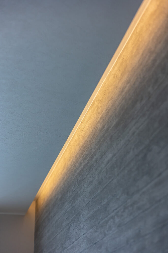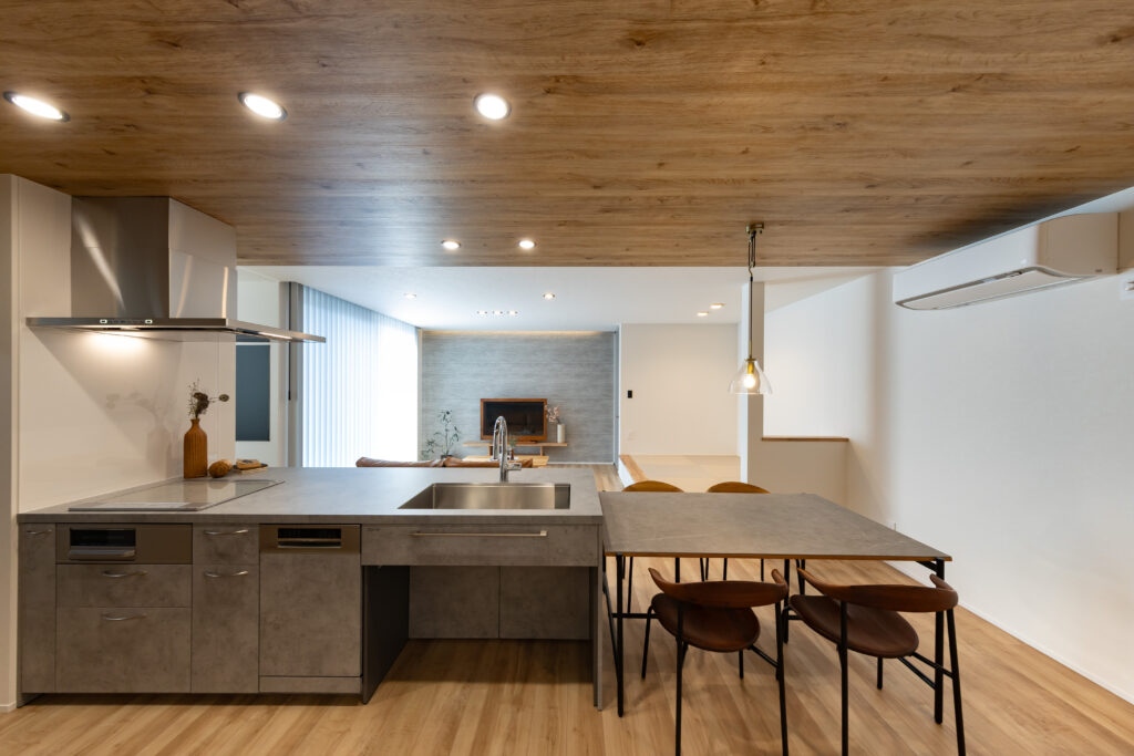 津山市|木目天井と間接照明が彩る、モダンなデザイン住宅
