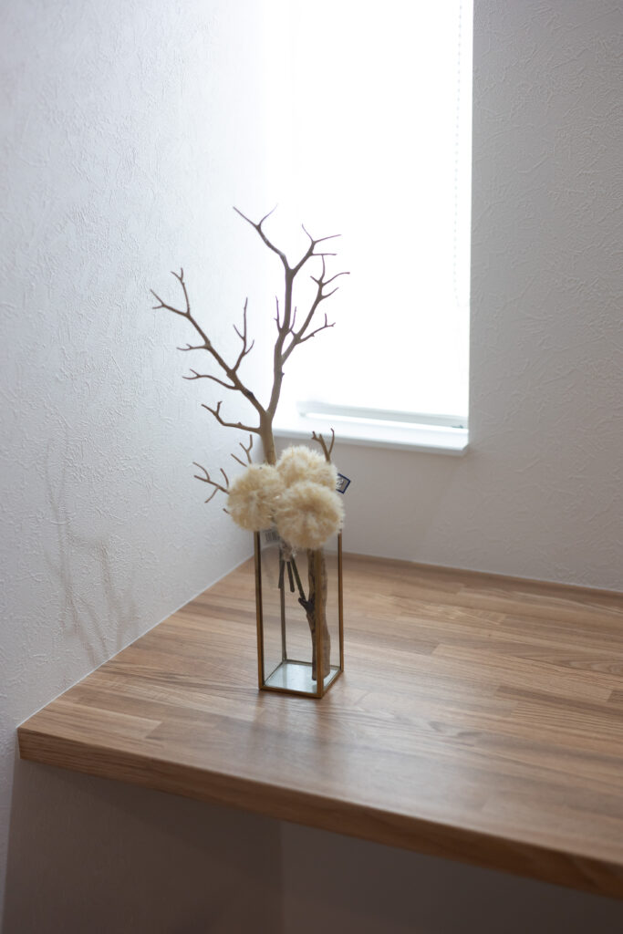 リビングの一角にはスタディーコーナーを計画、日中は柔らかな自然光が手元を照らし、読書やワークスペースとして最適。あえてリビングと緩やかに繋がる位置に設けることで、家族の気配を感じながらも、自分の時間に集中できる絶妙な距離感を実現しました。